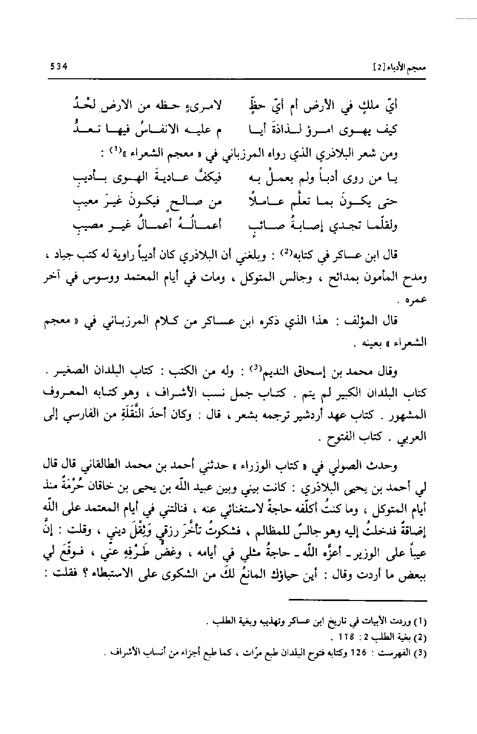 ومن شعر البلاذري الذي رواه المرزباني في «معجم الشعراء» «1» :