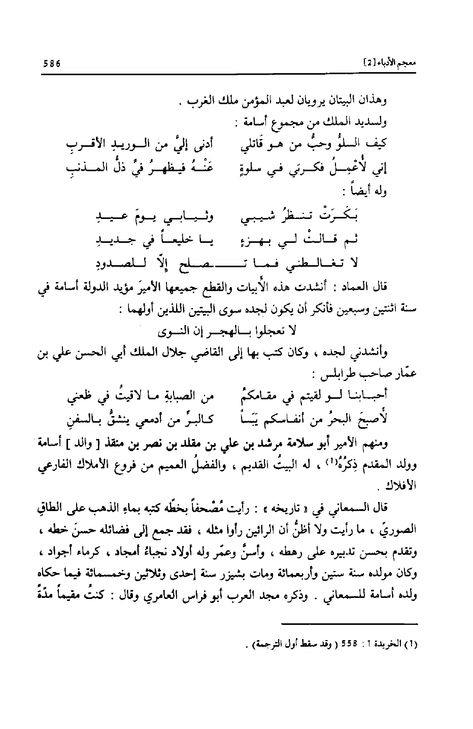 قال العماد: أنشدت هذه الأبيات والقطع جميعها الأمير مؤيد الدولة أسامة في سنة اثنتين وسبعين فأنكر أن يكون لجده سوى البيتين اللذين أولهما: