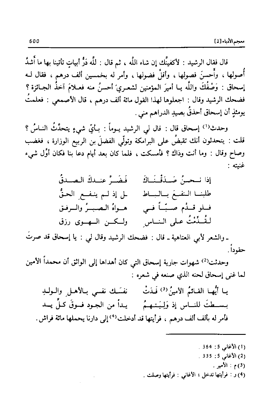وحدثت «2» شهوات جارية إسحاق التي كان أهداها إلى الواثق أن محمدا الأمين لما غنى إسحاق لحنه الذي صنعه في شعره: