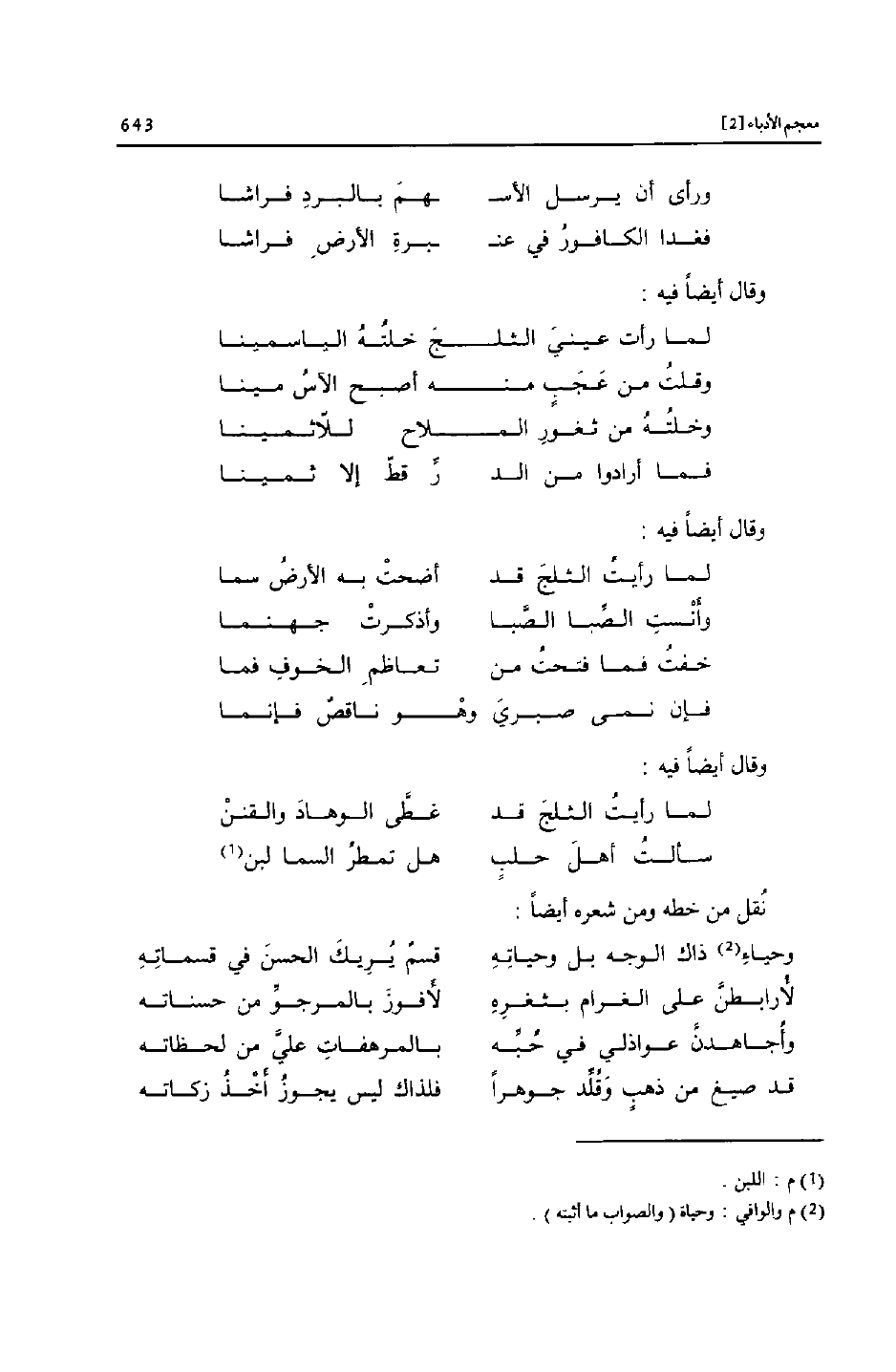 وحياء «2» ذاك الوجه بل وحياته ... قسم يريك الحسن في قسماته