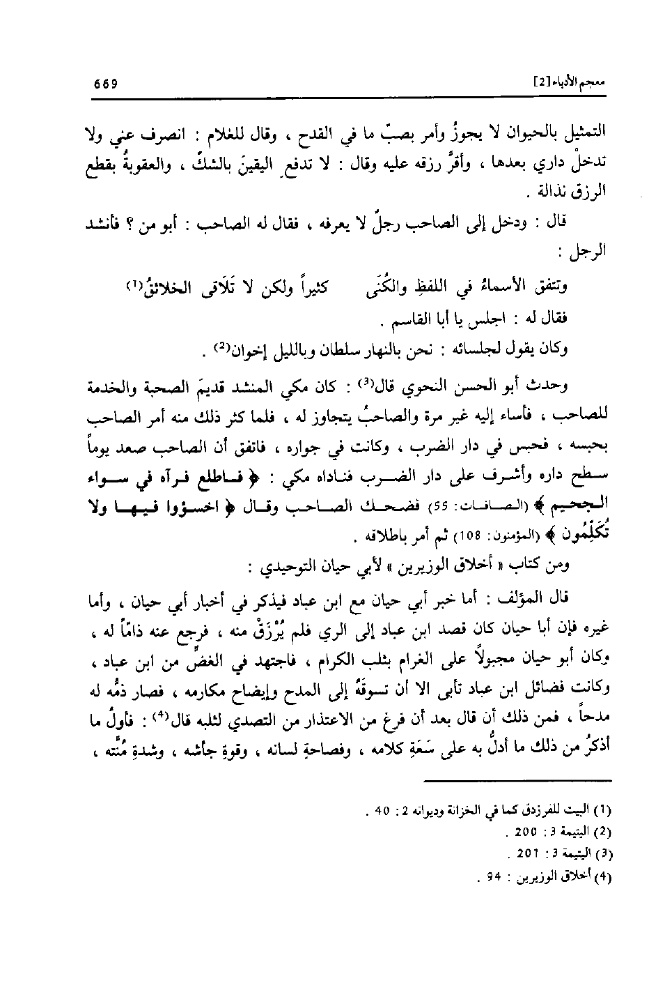 ومن كتاب «أخلاق الوزيرين» لأبي حيان التوحيدي: