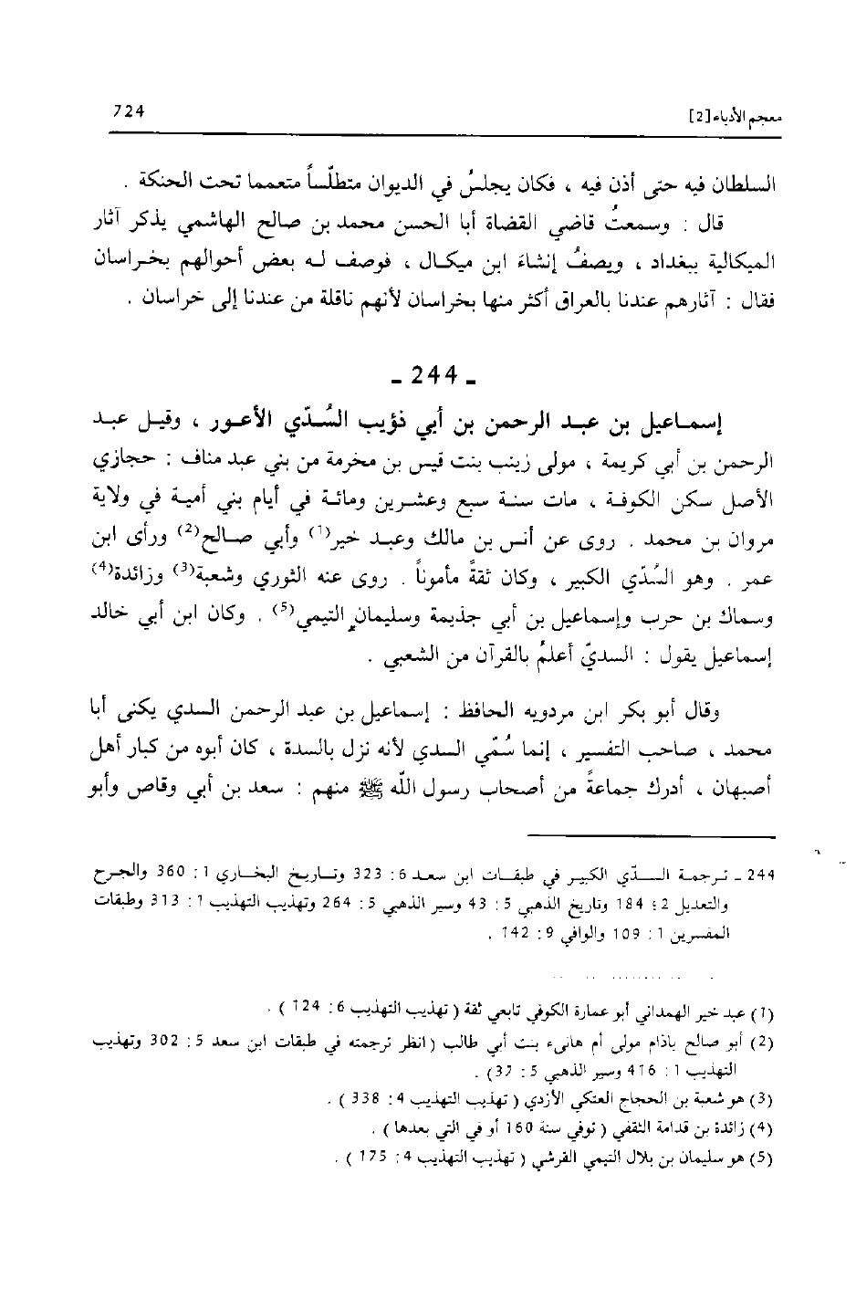 [244]- ترجمة السدّي الكبير في طبقات ابن سعد 6: 323 وتاريخ البخاري 1: 360 والجرح والتعديل 2؛ 184 وتاريخ الذهبي 5: 43 وسير الذهبي 5: 264 وتهذيب التهذيب 1: 313 وطبقات المفسرين 1: 109 والوافي 9: 142.