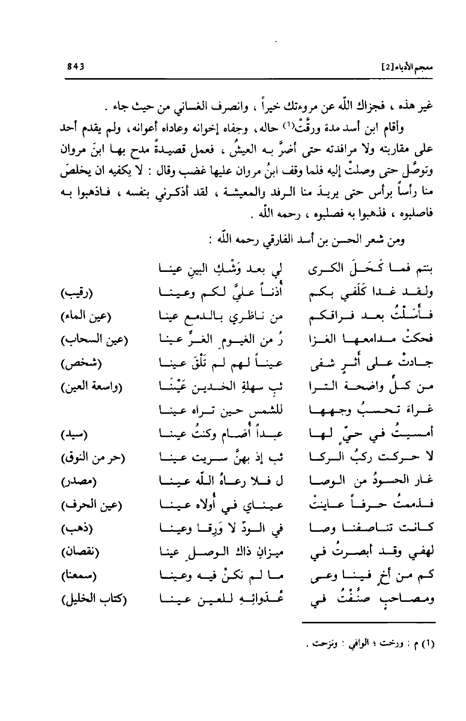 ومصاحب صنّفت في ... عدوائه للعين عينا (كتاب الخليل)