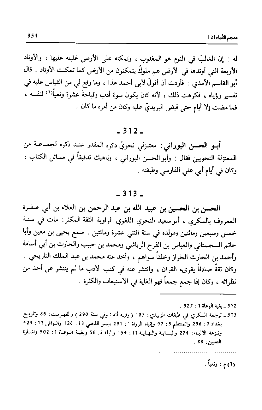 [313]- ترجمة السكري في طبقات الزبيدي: 183 (وفيه أنه توفي سنة 290) والفهرست: 86 وتاريخ بغداد 7: 296 والمنتظم 5: 97 وإنباه الرواة 1: 291 وسير الذهبي 13: 126 والوافي 11: 424 ونزهة الالباء: 274 والبداية والنهاية 11: 154 والبلغة: 56 وبغية الوعاة 1: 502 واشارة التعيين: 88.
