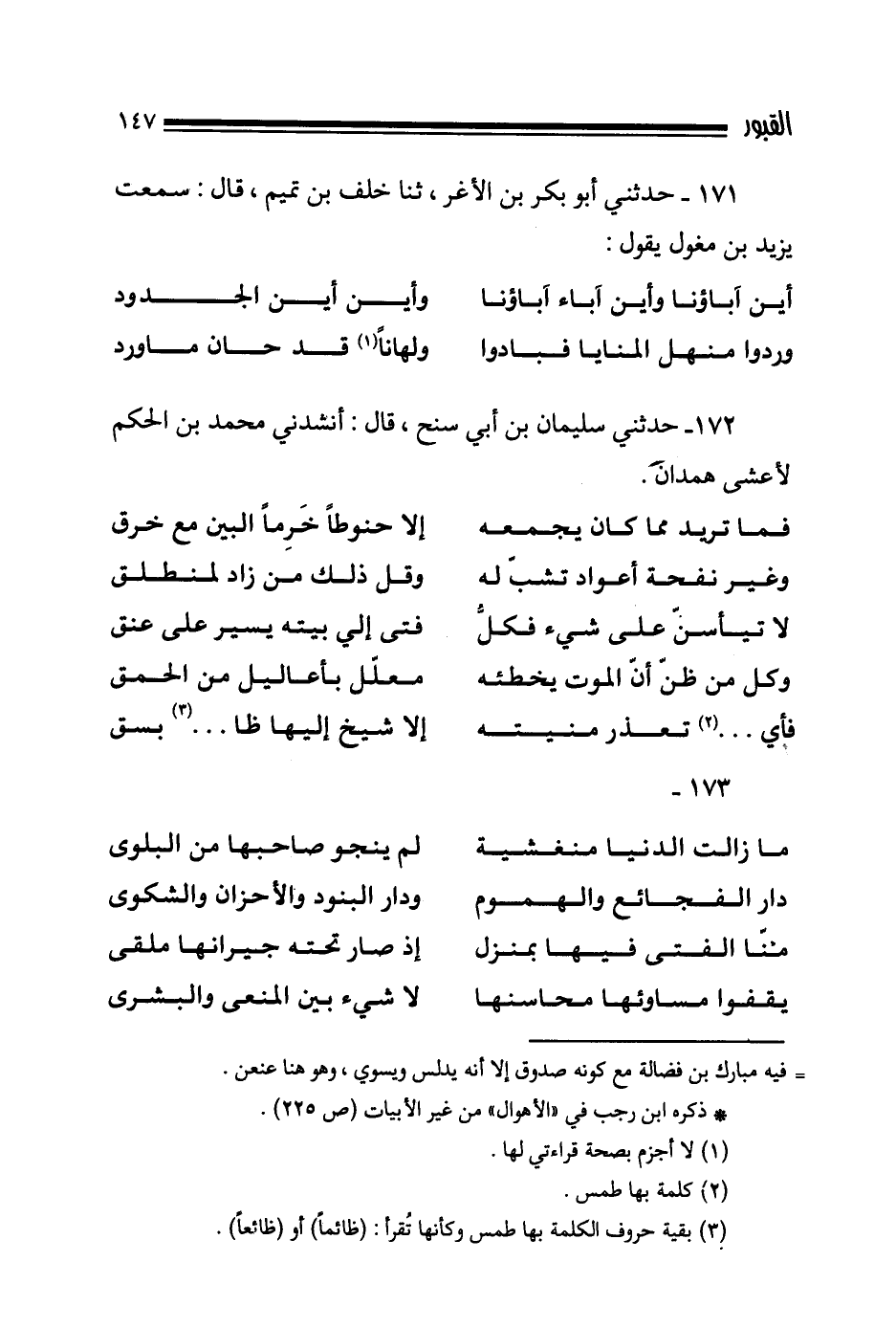 172- حدثني سليمان بن أبي سنح قال أنشدني محمد بن الحكم لأعشى همدان