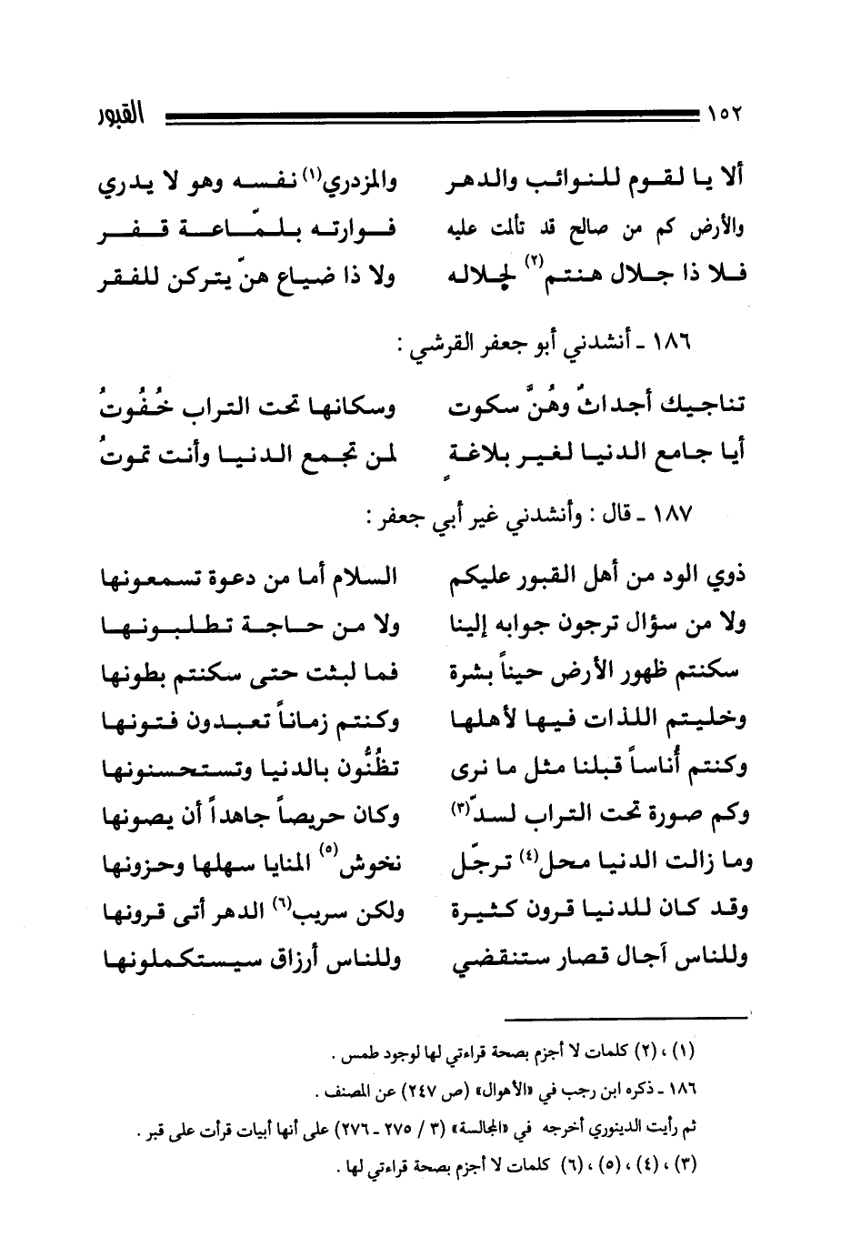 تناجيك أجداث وهن سكوت ... وسكانها تحت التراب خفوت