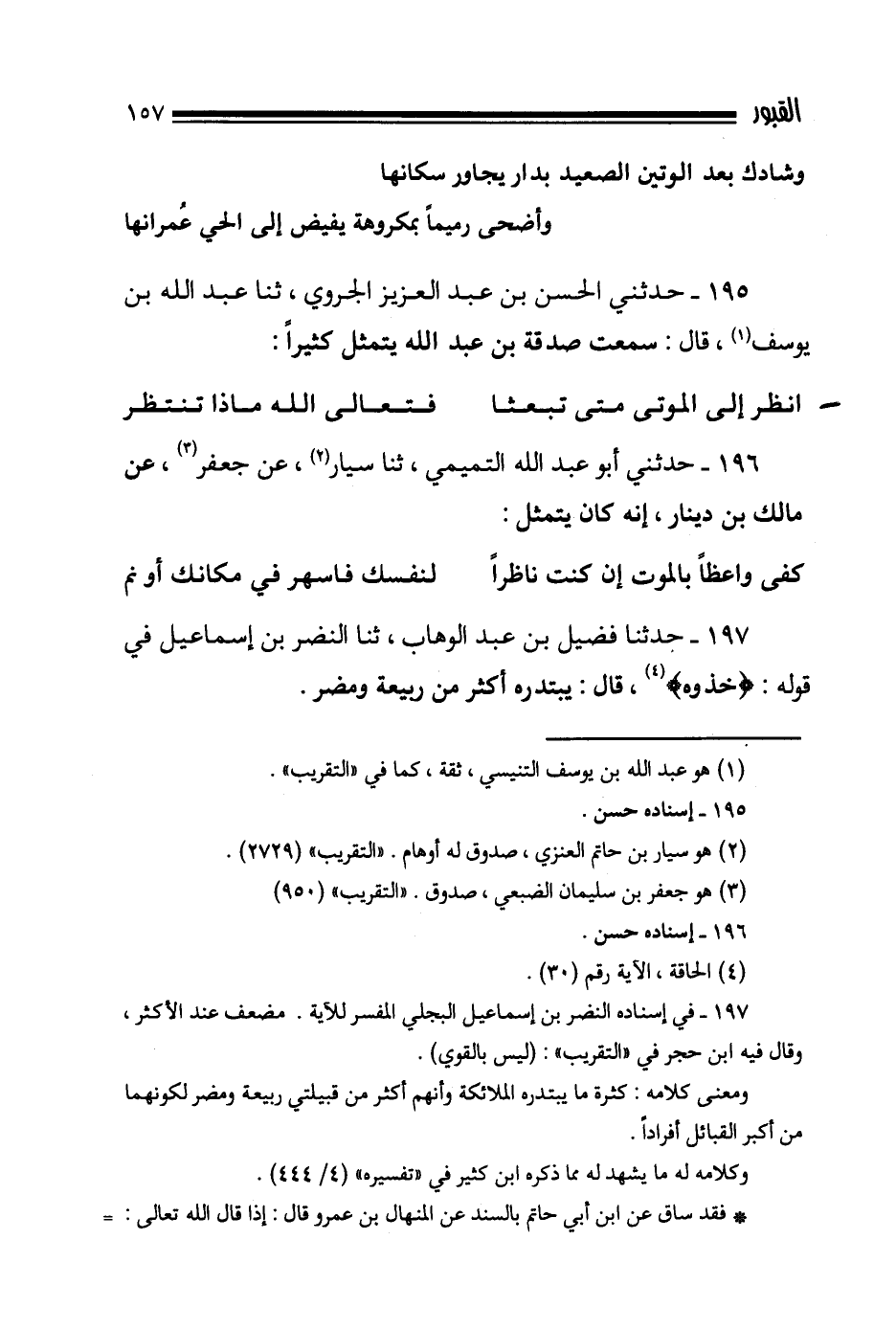 196- حدثني أبو عبد الله التميمي ثنا سيار عن جعفر عن مالك بن دينار إنه كان يتمثل