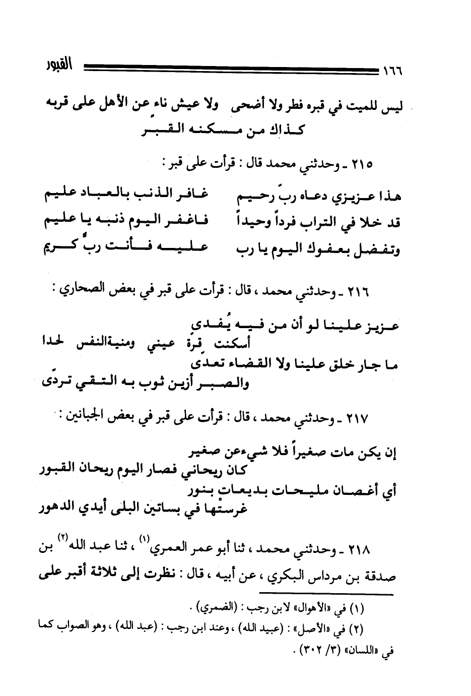 216- وحدثني محمد قال قرأت على قبر في بعض الصحاري