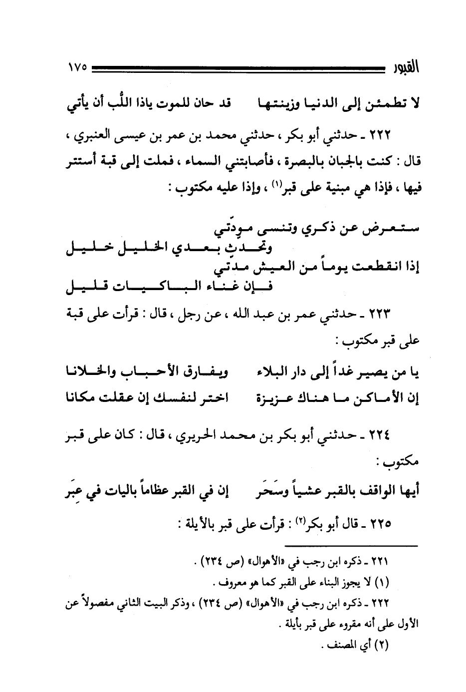 224- حدثني أبو بكر بن محمد الحريري قال كان على قبر مكتوب
