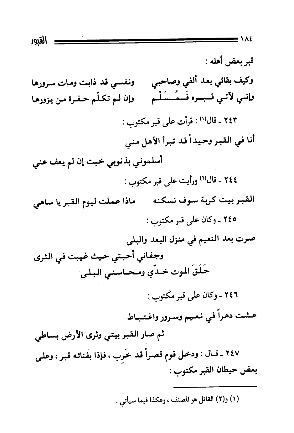 247- قال ودخل قوم قصرا قد خرب فإذا بفنائه قبر وعلى بعض حيطان القبر مكتوب