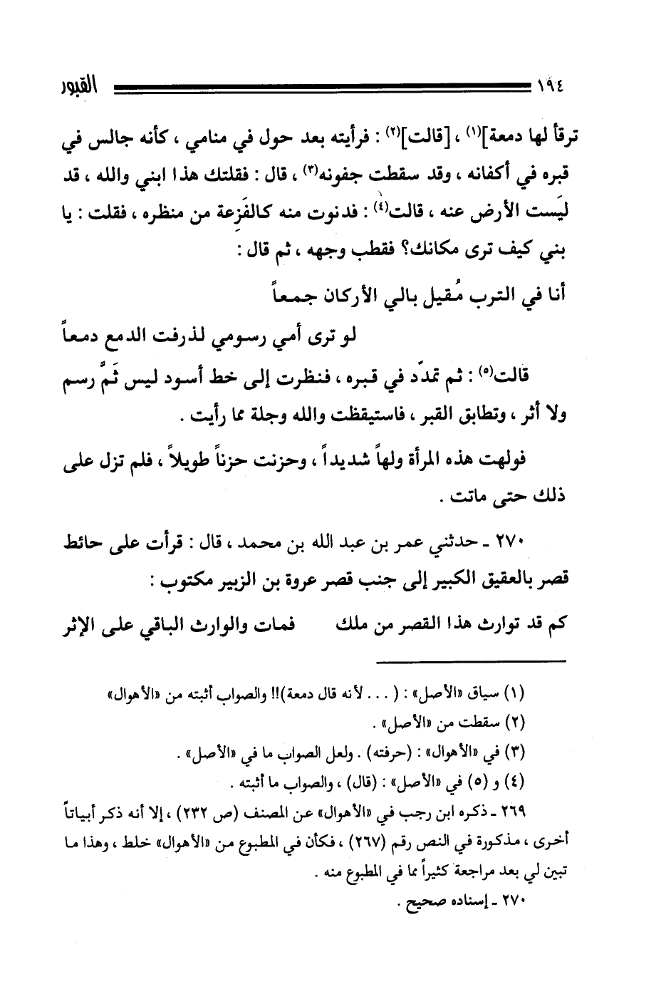 270- حدثني عمر بن عبد الله بن محمد قال قرأت على حائط قصر بالعقيق الكبير إلى جنب قصر عروة بن الزبير مكتوب