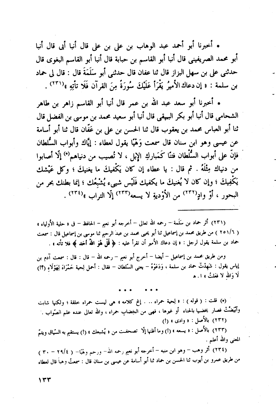 أخبرنا أبو سعد عبد الله بن عمر، قال: أنبا أبو القاسم زاهر بن طاهر الشحامي، قال: أنبا أبو بكر البيهقي، قال: أنبا أبو سعيد محمد بن موسى بن الفضل، قال: ثنا أبو العباس محمد بن يعقوب، قال: ثنا الحسن بن علي بن عفان، قال: ثنا أبو أسامة، عن عيسى وهو ابن سنان قال سمعت وهيا يقول لعطاء: إياك وأبواب السلطان فإن على أبواب السلطان فتنا كمبارك الإبل، لا تصيب من دنياهم إلا أصابوا من دنياك مثله.