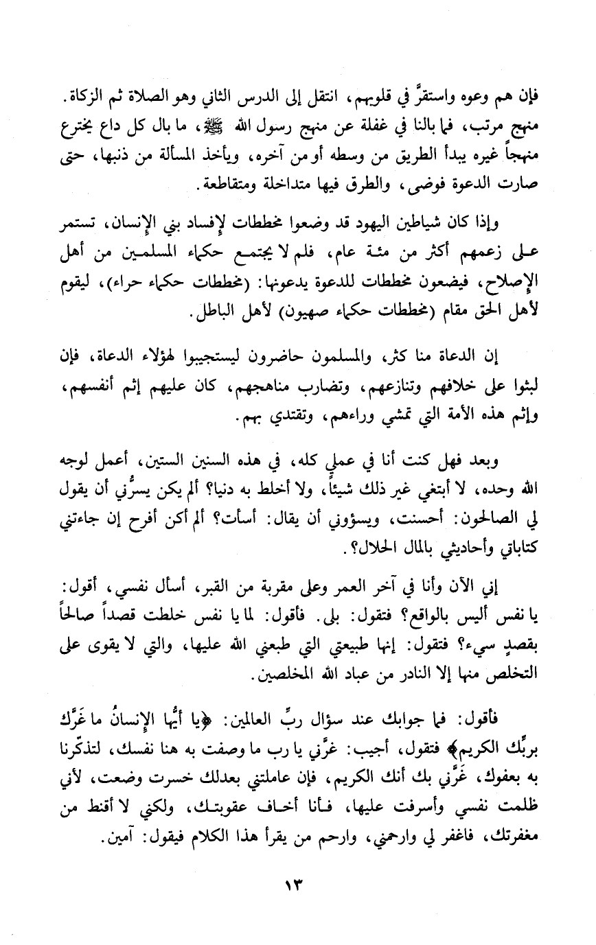 وبعد فهل كنت أنا في عملي كله، في هذه السنين الستين، أعمل لوجه الله وحده، لا أبتغي غير ذلك شيئاً، ولا أخلط به دنيا؟ ألم يكن يسرُّني أن يقول لي الصالحون: أحسنت، ويسؤوني أن يقال: أسأت؟ ألم أكن أفرح إن جاءتني كتاباتي وأحاديثي بالمال الحلال؟.