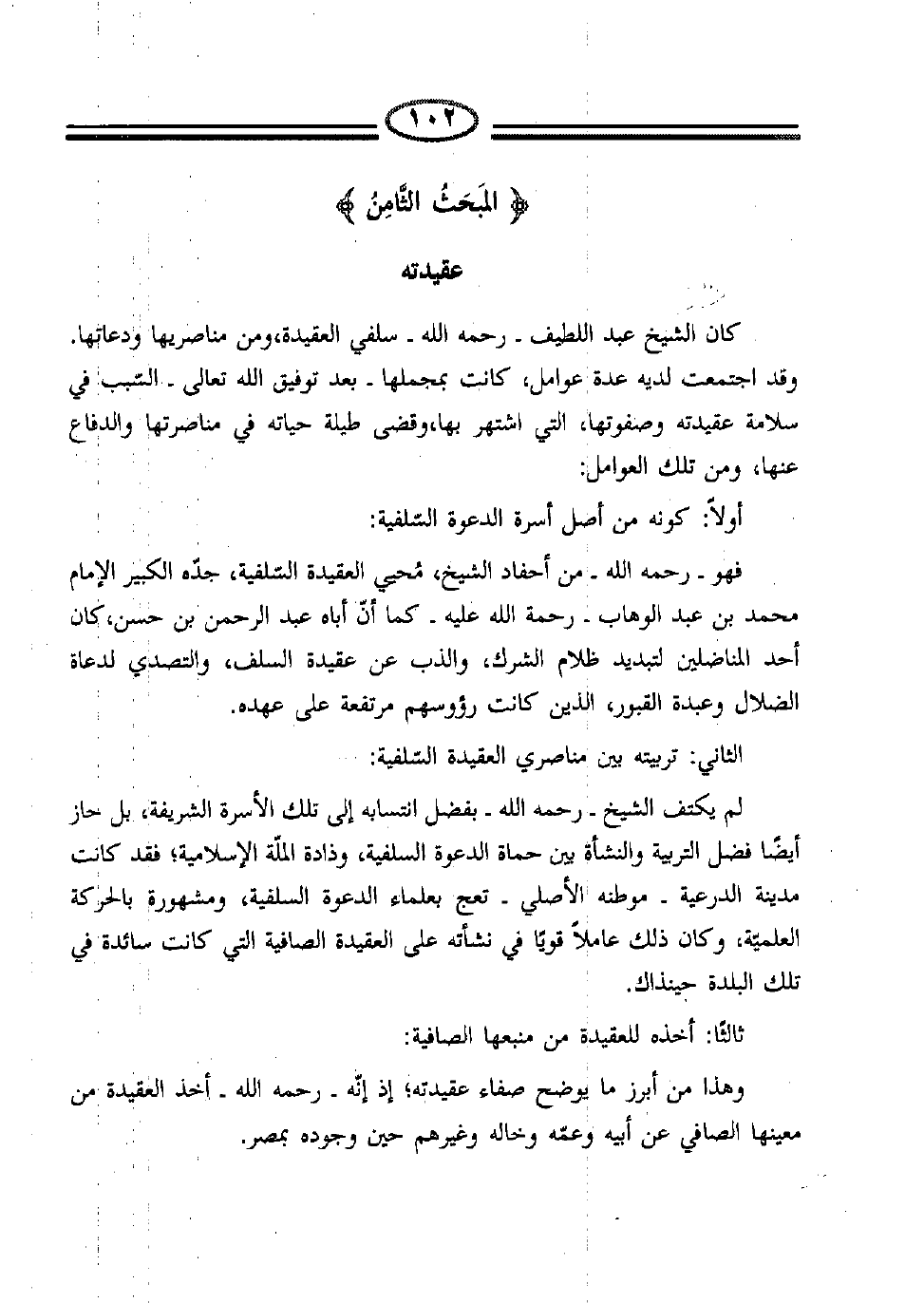 وهذا من أبرز ما يوضح صفاء عقيدته؛ إذ إنه -رحمه الله- أخذ العقيدة من معينها الصافي عن أبيه وعمه وخاله وغيرهم حين وجوده بمصر.