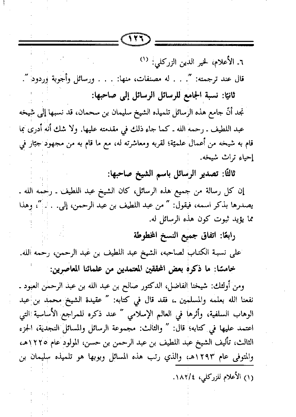 ومن أولئك: شيخنا الفاضل، الدكتور صالح بن عبد الله بن عبد الرحمن العبود -نفعنا الله بعلمه والمسلمين-، فقد قال في كتابه: "عقيدة الشيخ محمد بن عبد الوهاب السلفية، وأثرها في العالم الإسلامي" عند ذكره للمراجع الأساسية التي اعتمد عليها في كتابه؛ قال: "والثالث: مجموعة الرسائل والمسائل النجدية، الجزء الثالث، تأليف الشيخ عبد اللطيف بن عبد الرحمن بن حسن، المولود عام 1225هـ،