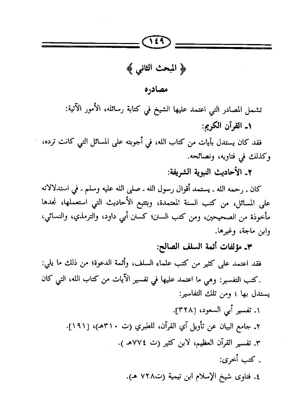 تشمل المصادر التي اعتمد عليها الشيخ في كتابة رسائله، الأمور التالية: