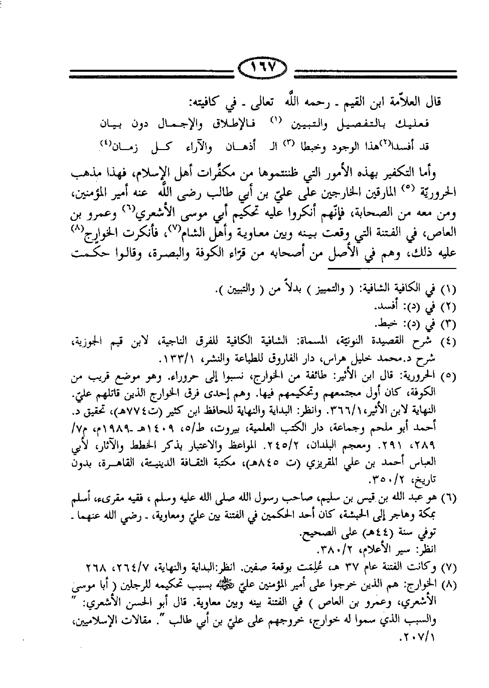 (4) شرح القصيدة النونية، المسماة: الشافية الكافية للفرق الناجية، لابن قيم الجوزية،، شرح د. محمد خليل هراس، دار الفاروق للطباعة والنشر، 1/123.