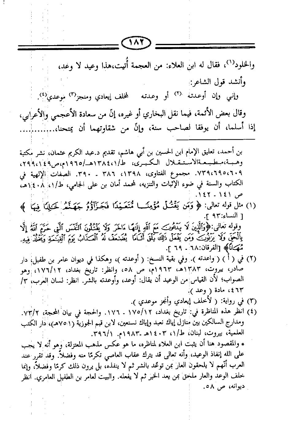 والخلود (1) ، فقال له ابن العلاء: من العجمة أُتيت، هذا وعيد لا وعد،