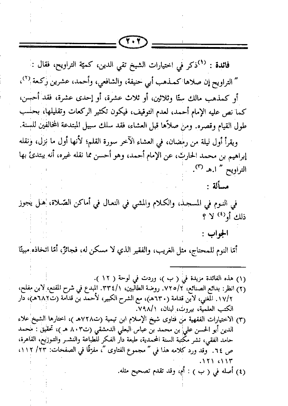 3 الاختيارات الفقهية من فتاوى شيخ الإسلام ابن تيمية (728هـ) ، اختارها الشيخ علاء الدين أبو الحسن علي بن محمد بن عباس البعلي الدمشقي (ت803هـ) ، تحقيق: محمد حامد الفقي، نشر مكتبة السنة المحمدية، طبعة دار الفكر للطباعة والنشر والتوزيع، القاهرة، ص64، وقد ورد كلامه هذا في "مجموع الفتاوى"، مفرقاً في الصفحات 23/112، 113، 121.