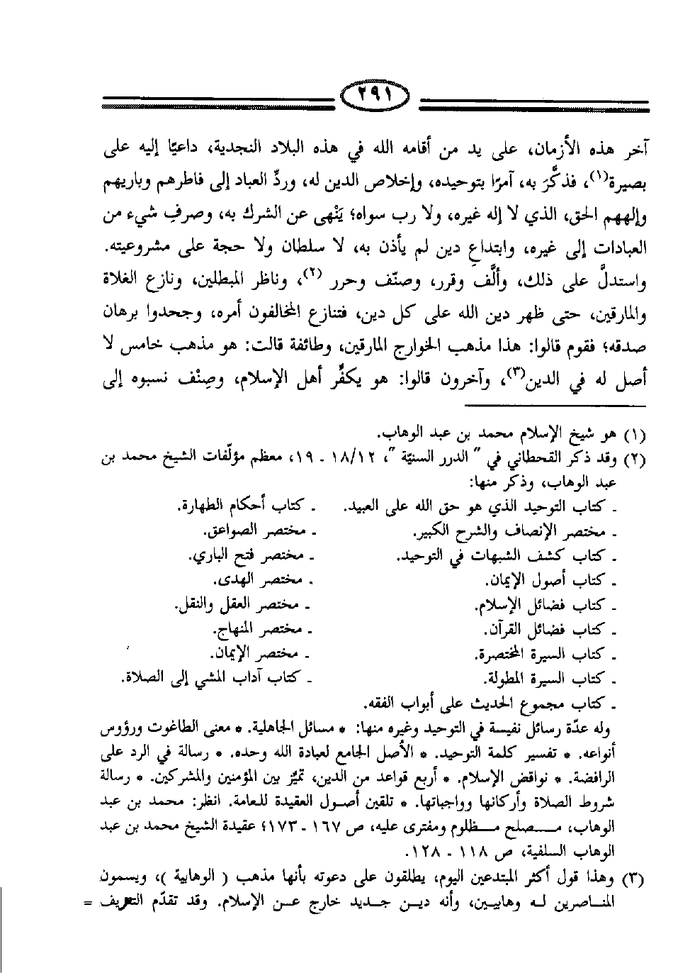 (2) وقد ذكر القحطاني في "الدرر السنية"، 12/18-19، معظم مؤلفات الشيخ محمد بن عبد الوهاب، وذكر منها: