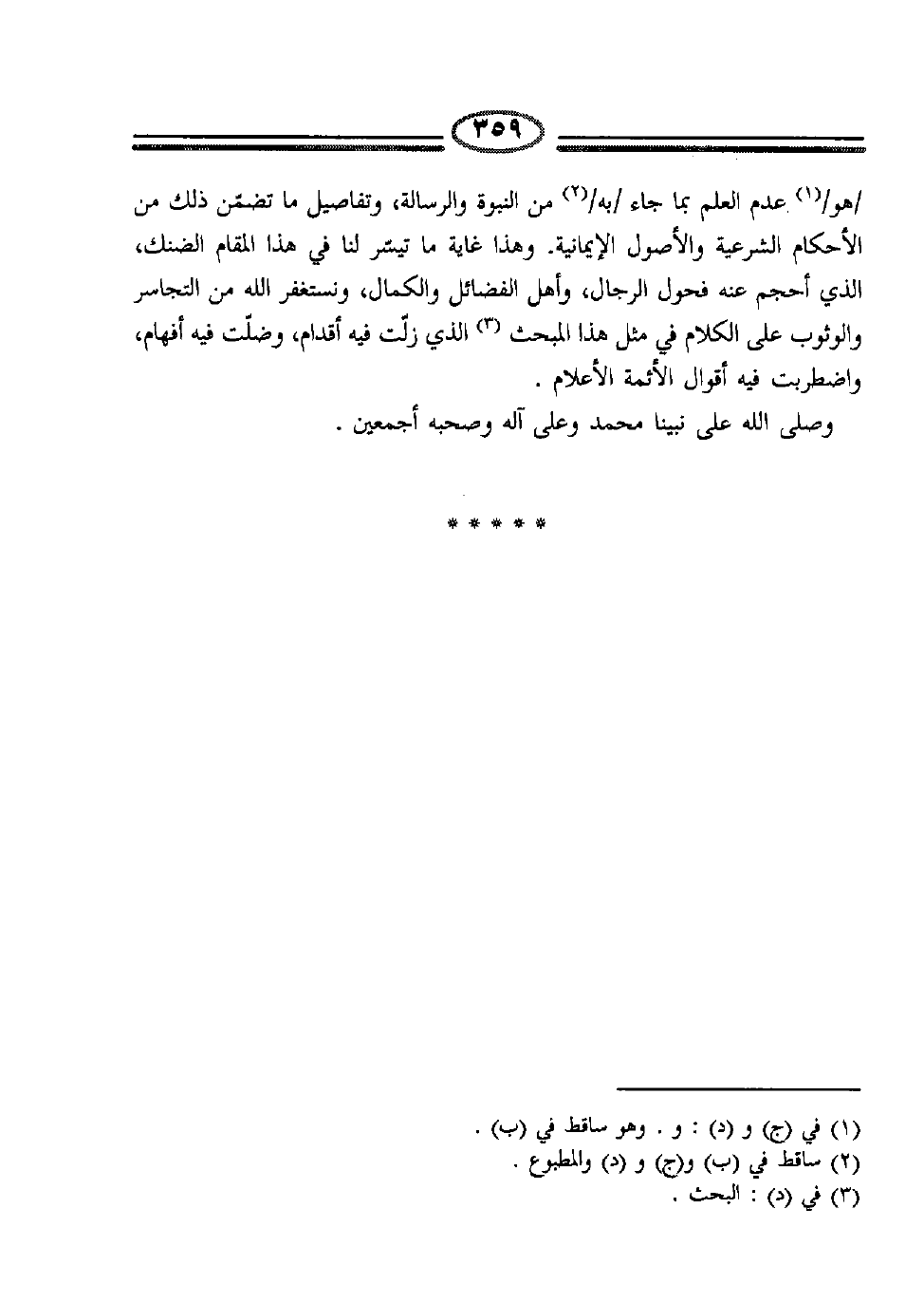 /هو/1 عدم العلم بما جاء /به/2 من النبوة والرسالة، وتفاصيل ما تضمن ذلك من الأحكام الشرعية والأصولية الإيمانية، وهذا غاية ما تيسّر لنا في هذا المقام الضنك، الذي أحجم عنه فحول الرجال، وأهل الفضائل والكمال، ونستغفر الله من التجاسر والوثوب على الكلام في مثل هذا المبحث3 الذي زلّت فيه أقدام وضلّت فيه أفهام، واضطربت فيه أقوال الأئمة الأعلام.