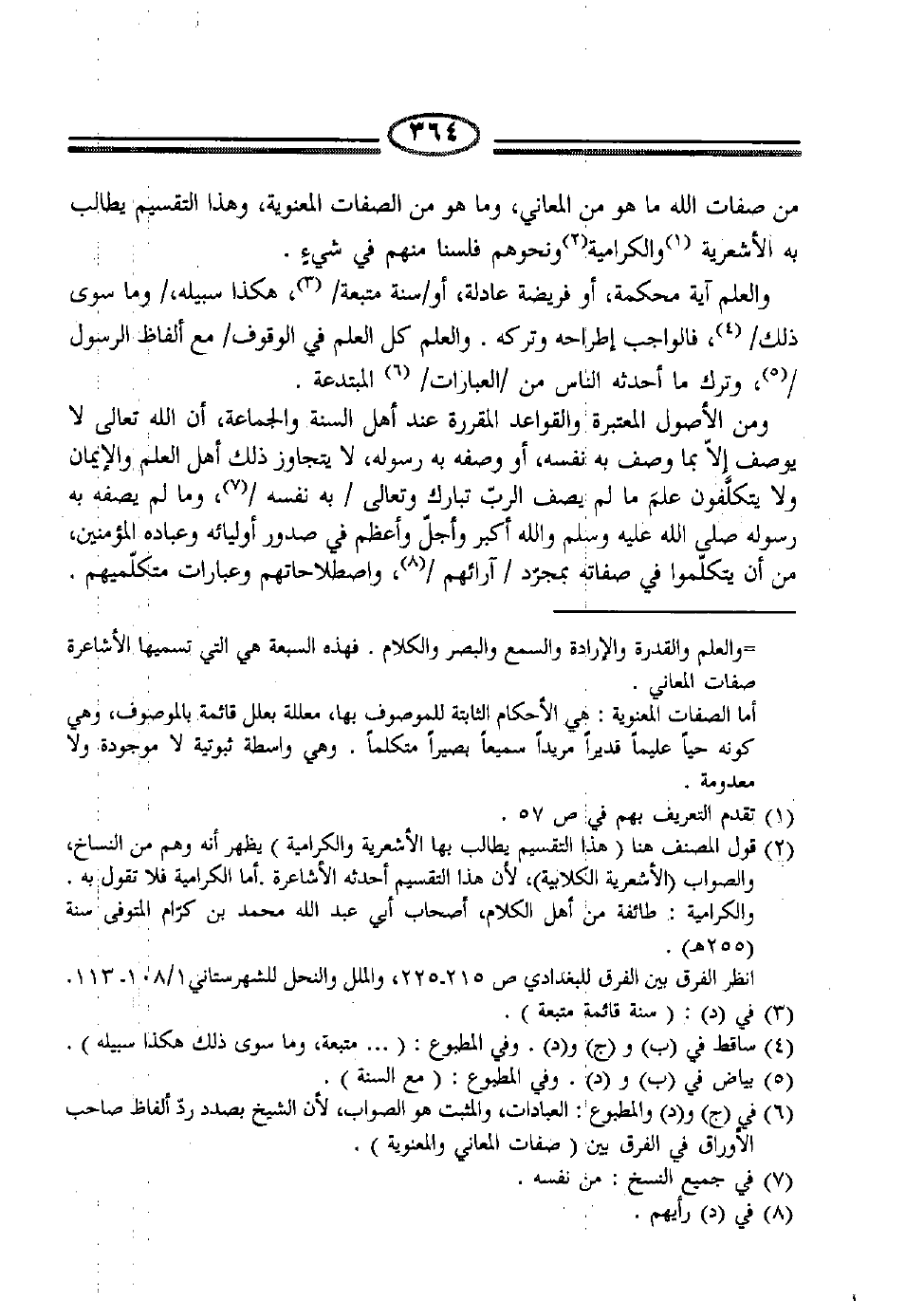 2 قول المصنف هنا (هذا التقسيم يطالب بها الأشعرية والكرامية) يظهر أنه وهم من الناسخ، والصواب (الأشعرية الكلابية) ، لأن هذا التقسيم أحدثه الأشاعرة، أما الكرامية فلا تقول به.