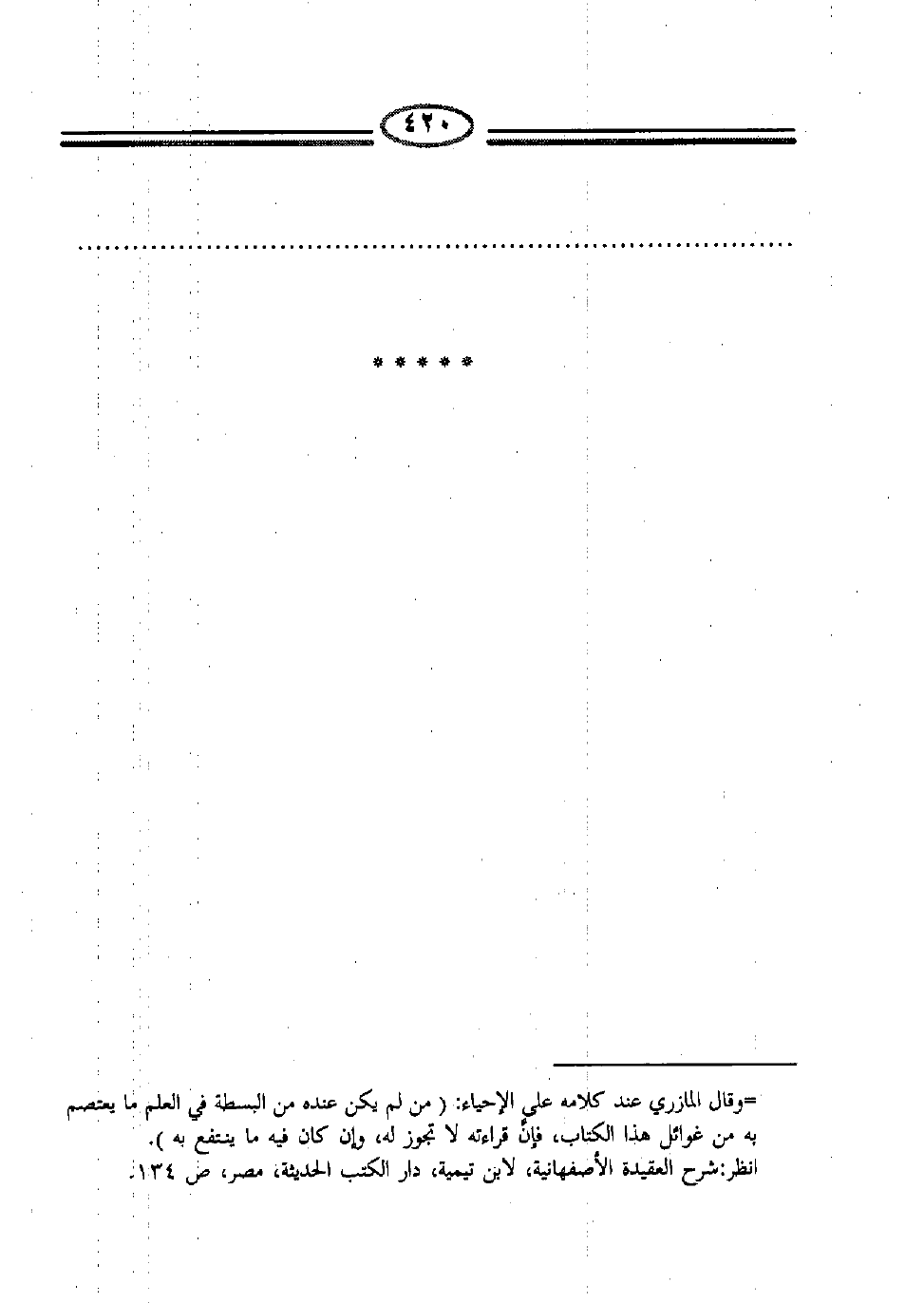 = وقال المازري عند كلامه على الإحياء: (من لم يكن عنده من البسطة في العلم ما يعتصم به من غوائل هذا الكتاب، فإنَّ قراءته لا تجوز له، وإن كان فيه ما ينتفع به) . انظر: شرح العقيدة الأصفهانية، لابن تيمية، دار الكتب الحديثة، مصر ص134.