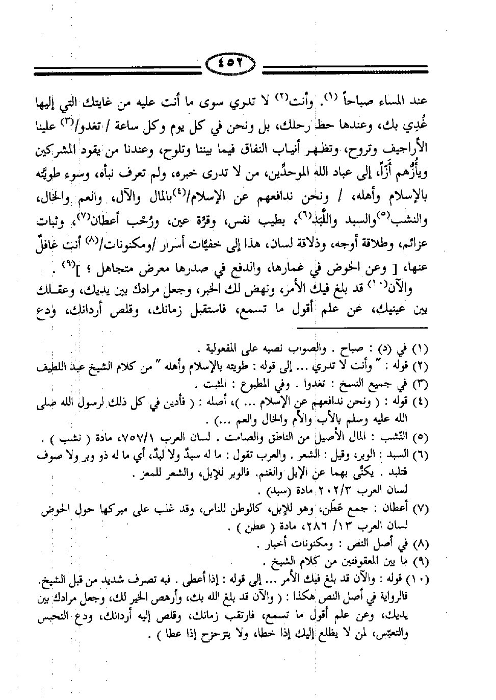 2 قوله: "وأنت لا تدري ... إلى قوله: طويته بالإسلام وأهله" من كلام الشيخ عبد اللطيف