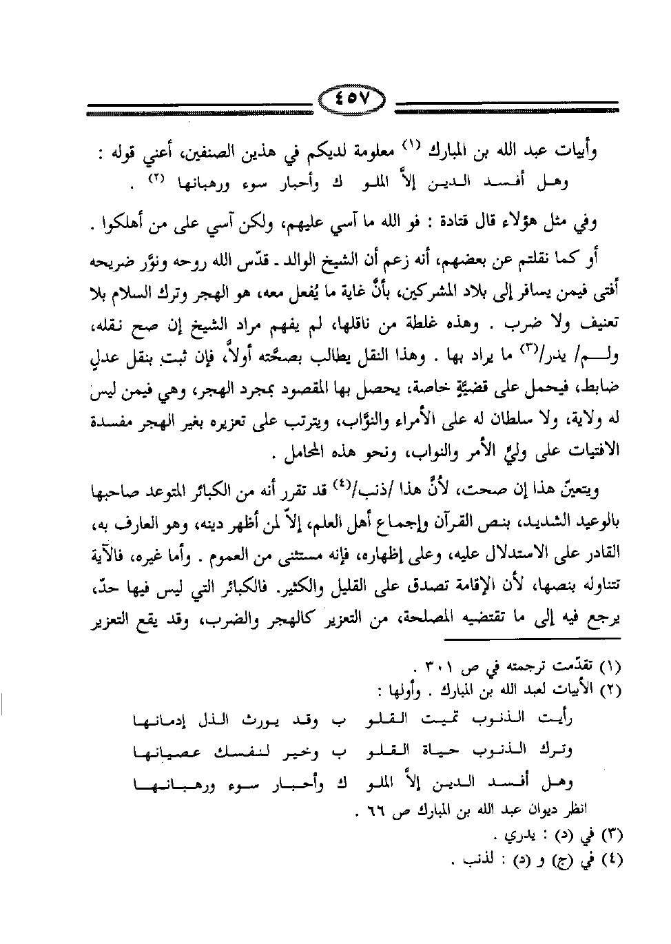 وأبيات عبد الله بن المبارك1 معلومة لديكم في هذين الصنفين، أعني قوله: