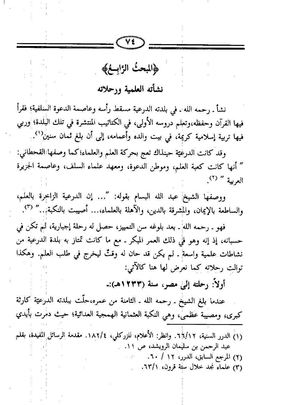 (3) علماء نجد خلال ستة قرون، 1/63.