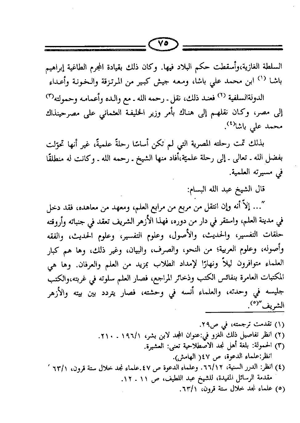 (5) علماء نجد خلال ستة قرون، 1/63.