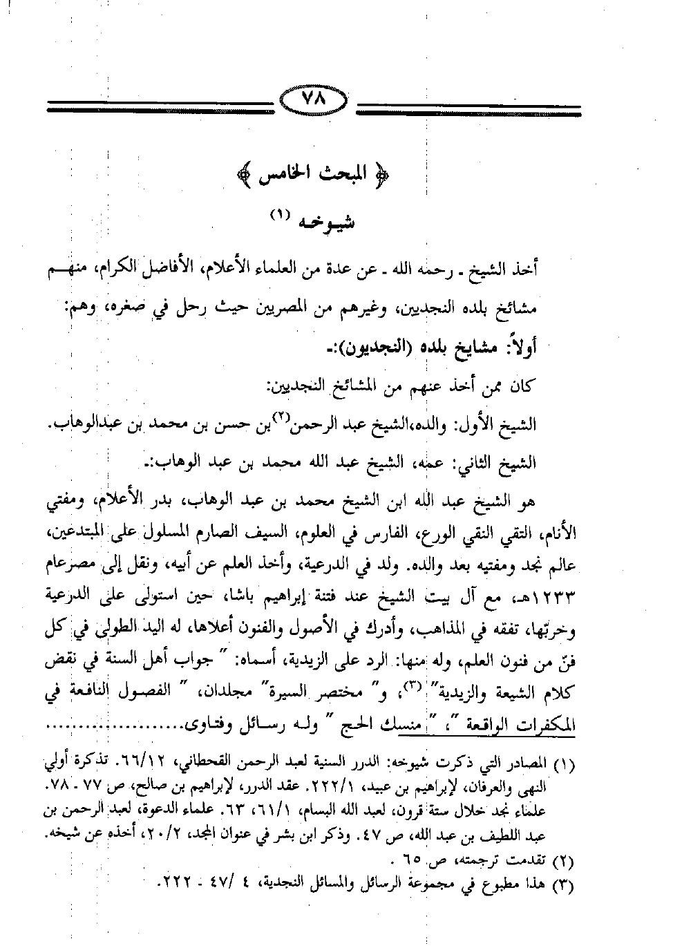 (3) هذا مطبوع في مجموعة الرسائل والمسائل النجدية، 4/47-222.
