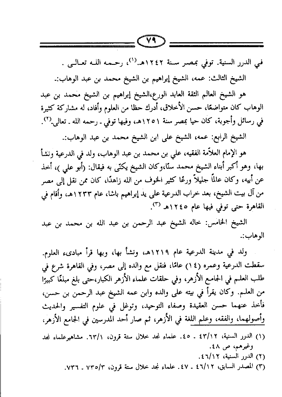 (1) الدرر السنية، 12/43-50، علماء نجد خلال ستة قرون، 1/63. مشاهير علماء نجد وغيرهم، ص48.