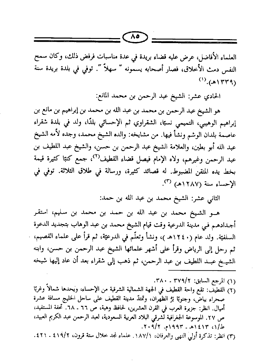 (3) انظر: تذكرة أولي النهى والعرفان، 1/187. علماء نجد خلال ستة قرون، 2/419-421.