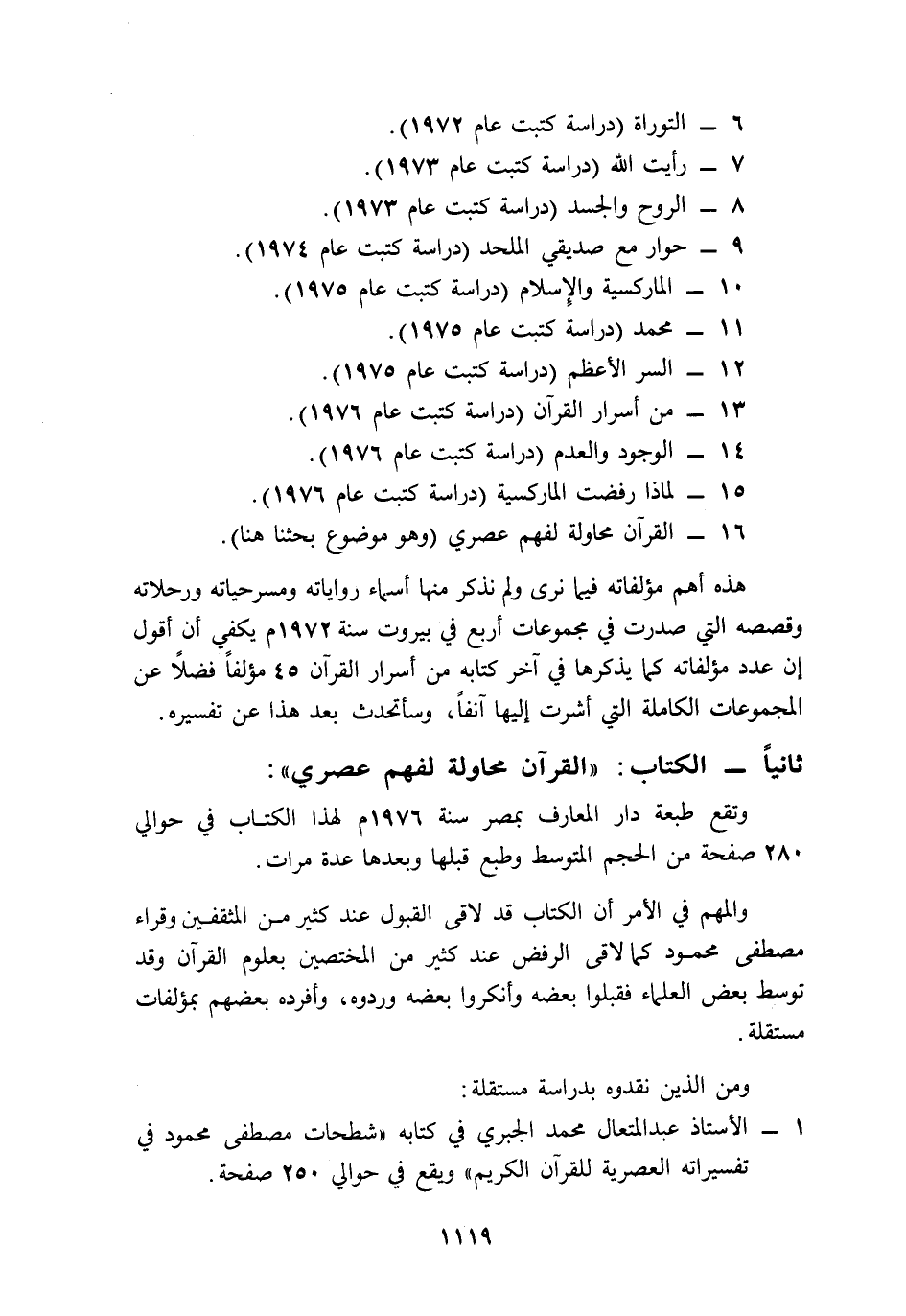 16- القرآن محاولة لفهم عصري: وهوموضوع بحثنا هنا".