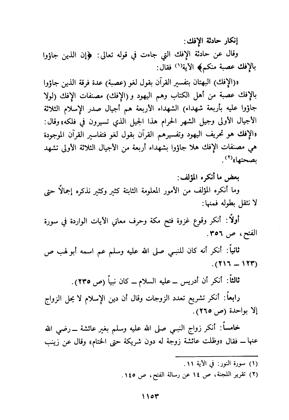 ثانيا: أنكر أنه كان للنبي صلى الله عليه وسلم عم اسمه أبو لهب ص"123-216".