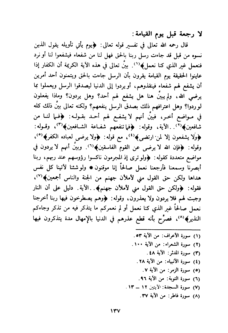 لا رجعة قبل يوم القيامة:
