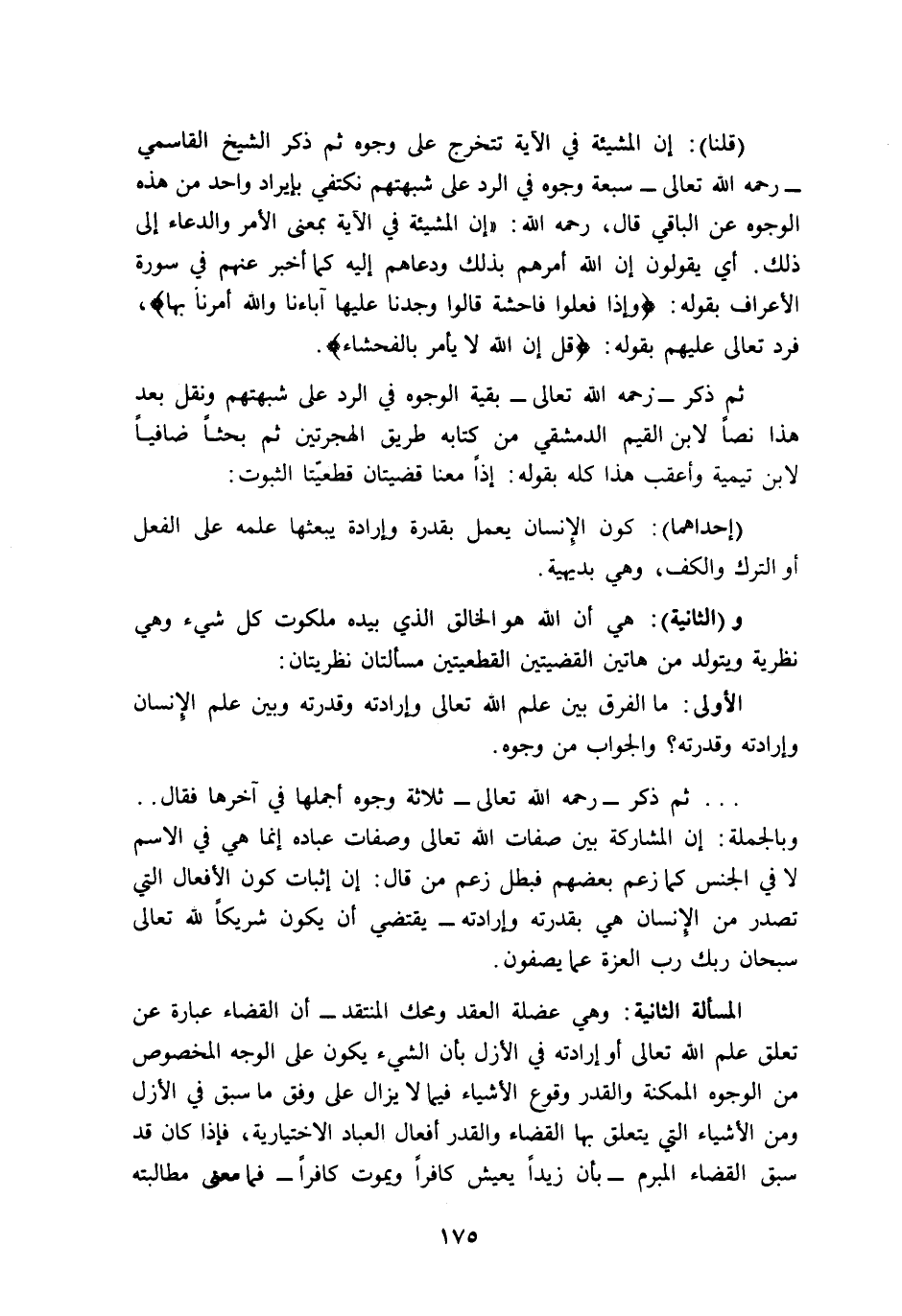 ثم ذكر -رحمه الله تعالى- بقية الوجوه في الرد على شبهتهم, ونقل بعد هذا نصا لابن القيم الدمشقي من كتابه: طريق الهجرتين, ثم بحثا ضافيا لابن تيمية وأعقب هذا كله بقوله: إذن معنا قضيتان قطعيتا الثبوت: