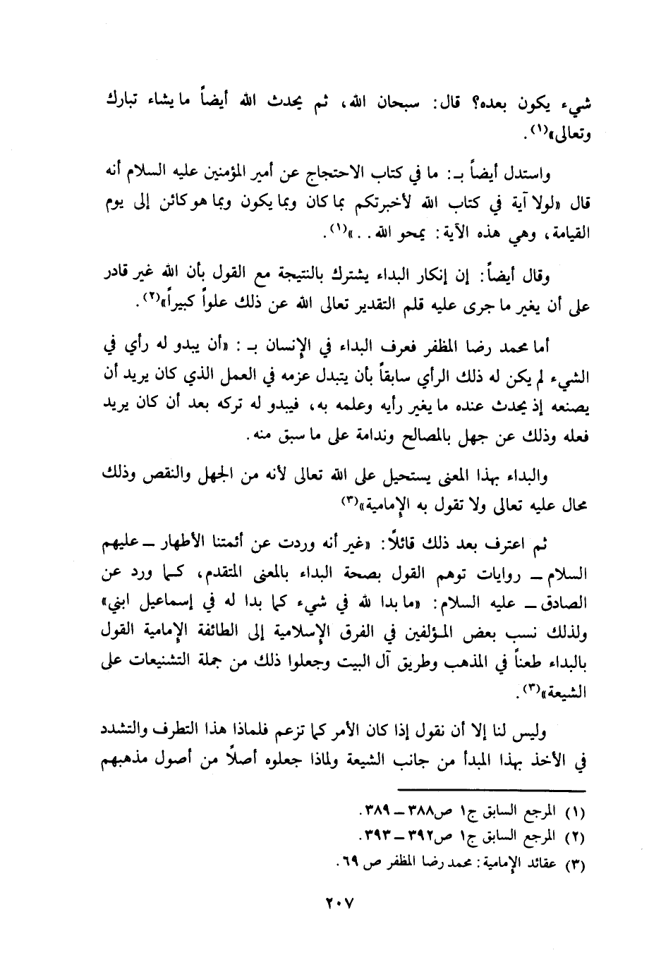 وقال أيضا: "إن إنكار البداء يشترك بالنتيجة مع القول بأن الله غير قادر على أن يغير ما جرى عليه قلم التقدير, تعالى الله عن ذلك علوا كبيرا"2.