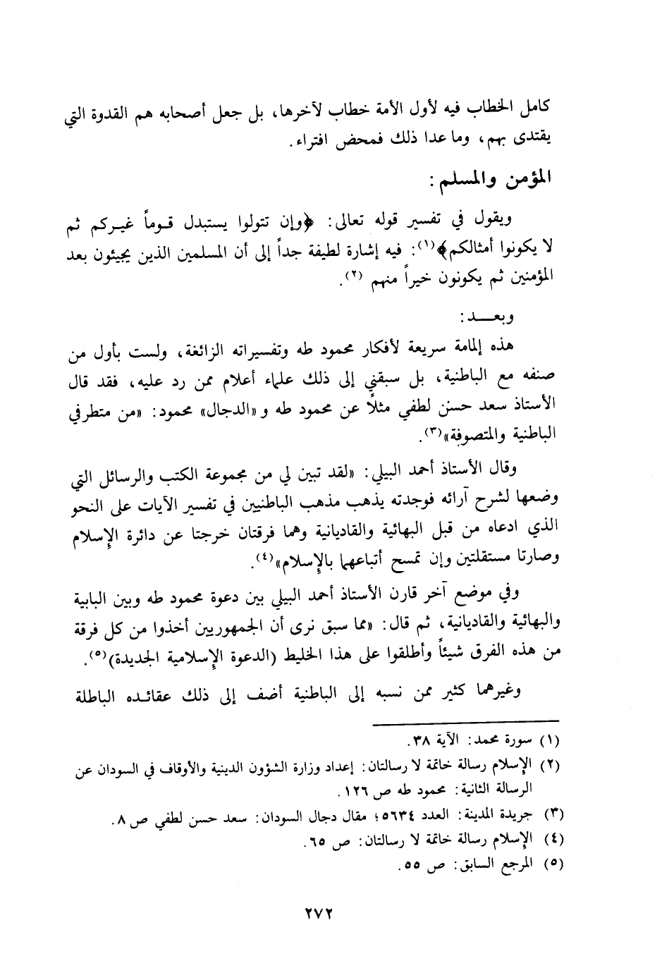 2 الإسلام رسالة خاتمة لا رسالتان: إعداد وزارة الشئون الدينية والأوقاف في السودان, عن الرسالة الثانية: محمود طه ص126.