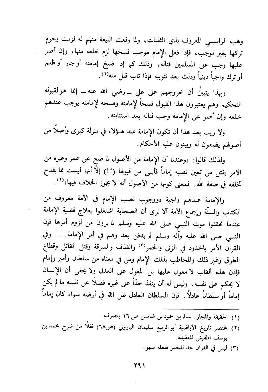 2 مختصر تاريخ الأباضية: أبو الربيع سليمان الباروني "ص68" نقلا من شرح محمد بن يوسف أطفيش للعقيدة.