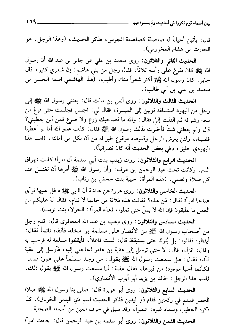 الحَدِيث الثَّانِي وَالثَّلَاثُونَ روى مُحَمَّد بن عَليّ عَن جَابر بن عبد الله أَن رَسُول الله صلى الله عَلَيْهِ وَسلم كَانَ يفرغ على رَأسه ثَلَاثًا فَقَالَ رجل من بني هَاشم إِن شعري كثير قَالَ جَابر كَانَ رَسُول الله صلى الله عَلَيْهِ وَسلم أَكثر شعرًا مِنْك وَأطيب هَذَا الْهَاشِمِي اسْمه الْحسن بن مُحَمَّد بن عَليّ بن أبي طَالب