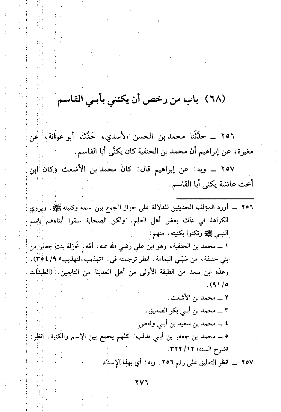 256 - حَدَّثَنَا مُحَمَّدُ بْنُ الْحَسَنِ الْأَسَدِيُّ، حَدَّثَنَا أَبُو عَوَانَةَ، عَنْ مُغِيرَةَ، عَنْ إِبْرَاهِيمَ: " أَنَّ §مُحَمَّدَ ابْنَ الْحَنَفِيَّةِ كَانَ يُكْنَى أَبَا الْقَاسِمِ