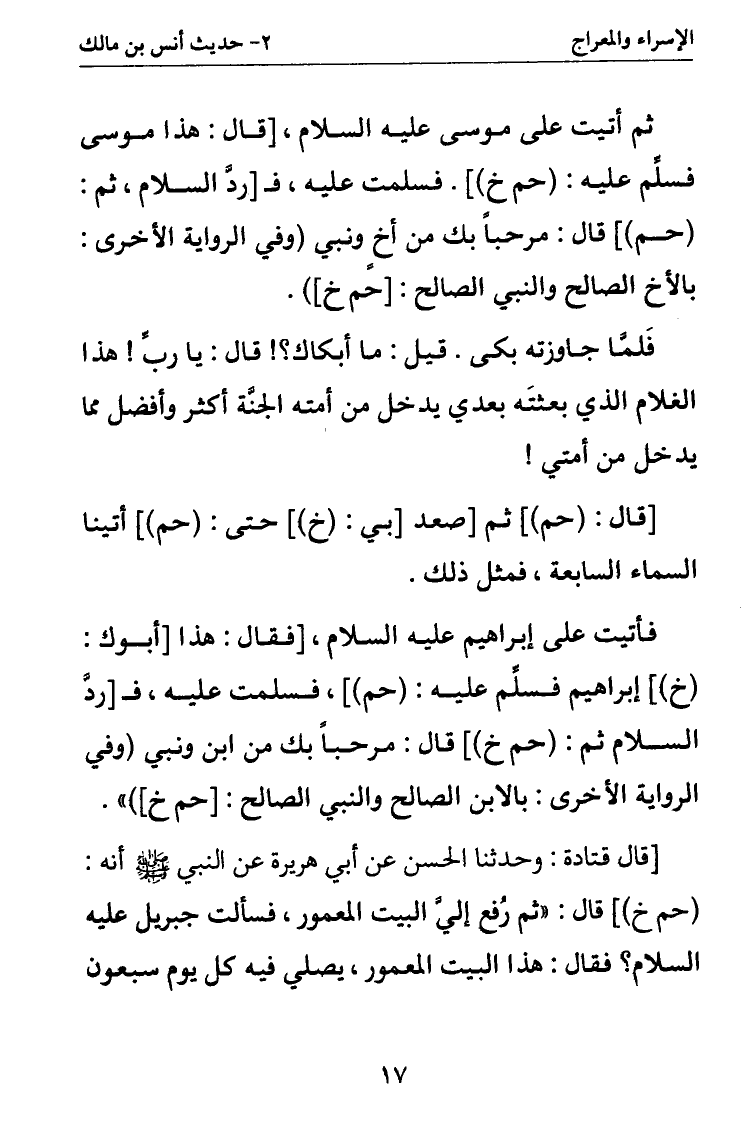 [قال: حم] ثم [صعد [بي: خ] حتى: حم] أتينا السماء السابعة فمثل ذلك.