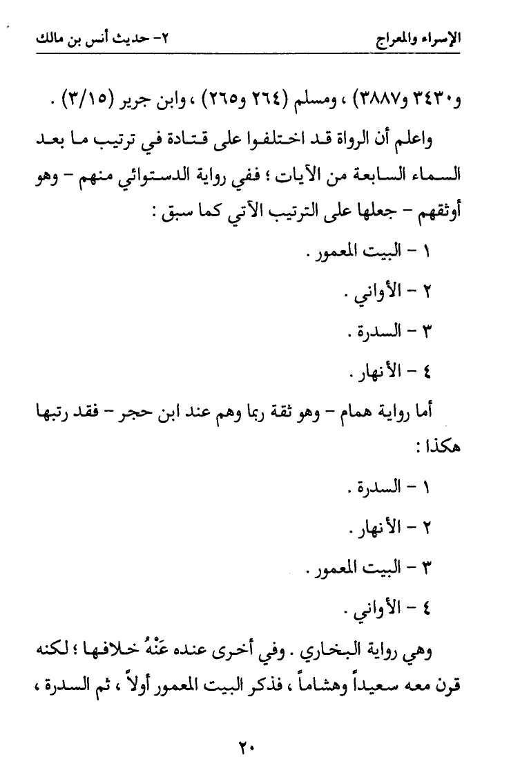 واعلم أن الرواة قد اختلفوا على قتادة في ترتيب ما بعد السماء السابعة من الآيات ففي رواية الدستوائي منهم - وهو أوثقهم - جعلها على الترتيب الآتي كما سبق: