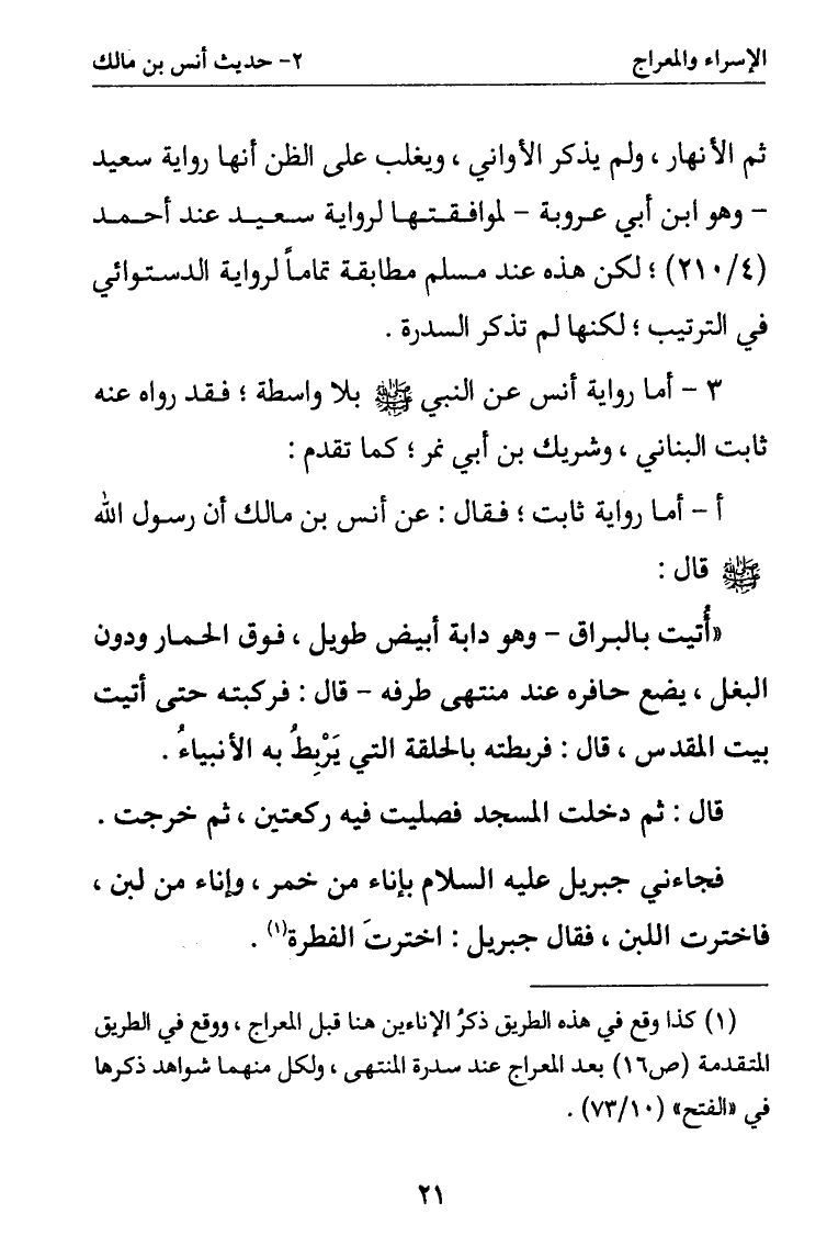 1 كذا وقع في هذه الطريق ذكر الإناءين هنا قبل المعراج ووقع في الطريق المتقدمة ص 16 بعد المعراج عند سدرة المنتهى ولكل منهما شواهد ذكرها في الفتح 10/73.