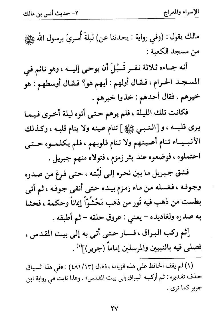 [ثم ركب البراق فسار حتى أتى به إلى بيت المقدس فصلى فيه بالنبيين والمرسلين إماما جرير] 1.