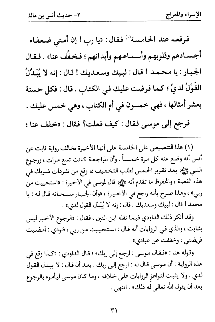 وقوله هنا: "فقال موسى: ارجع إلى ربك"قال الداودي: "كذا وقع في هذه الرواية: أن موسى قال له: ارجع إلى ربك. بعد أن قال: لا يبدل القول لدي. ولا يثبت لتواطؤ الروايات على خلافه وما كان موسى ليأمره بالرجوع بعد أن يقول الله تعالى له ذلك". انتهى