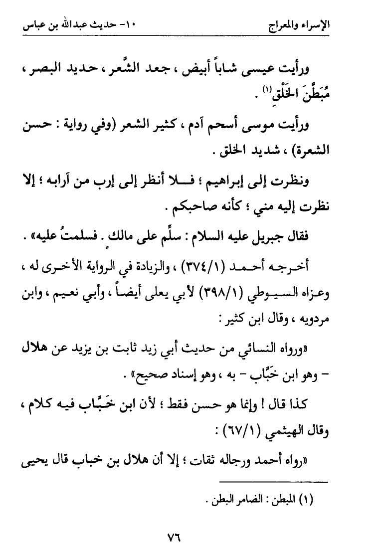 ورأيت عيسى شابا أبيض جعد الشعر حديد البصر مبطن الخلق1.