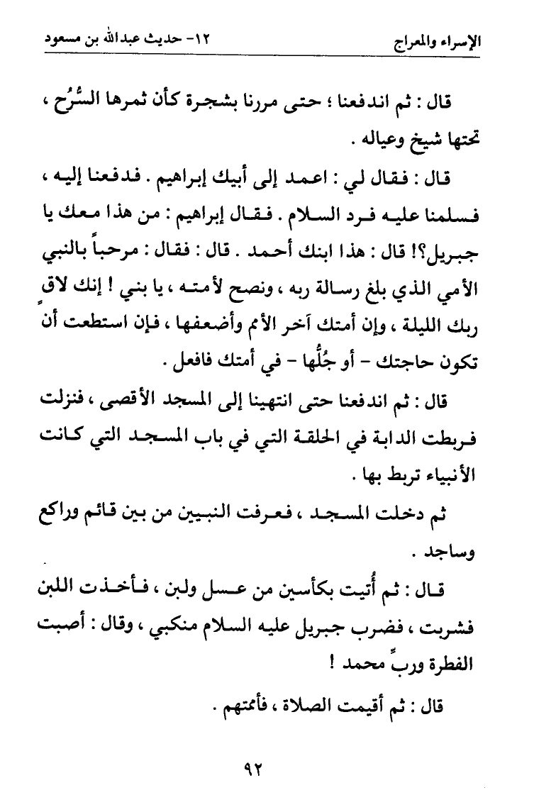 قال: ثم أتيت بكأسين من عسل ولبن فأخذت اللبن فشربت فضرب جبريل عليه السلام منكبي وقال: أصبت الفطرة ورب محمد!